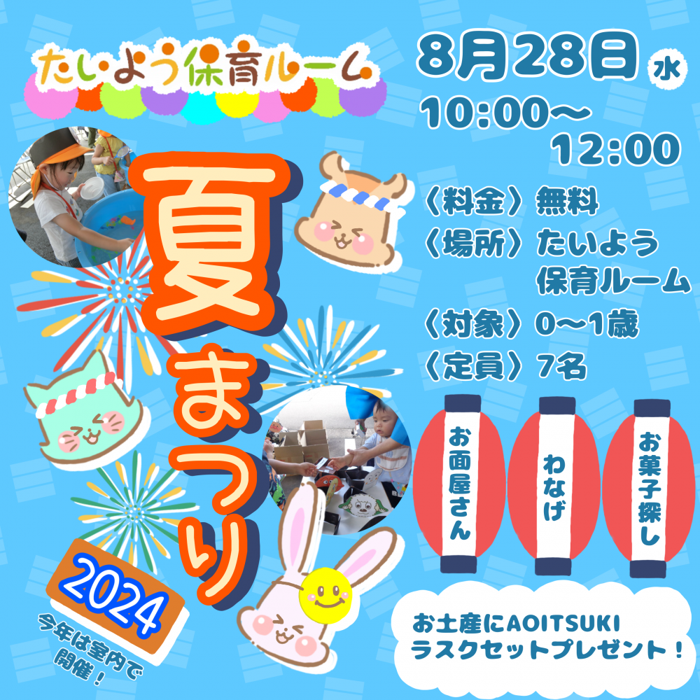 今年もたいよう保育ルームの夏祭りが開催されます❕
